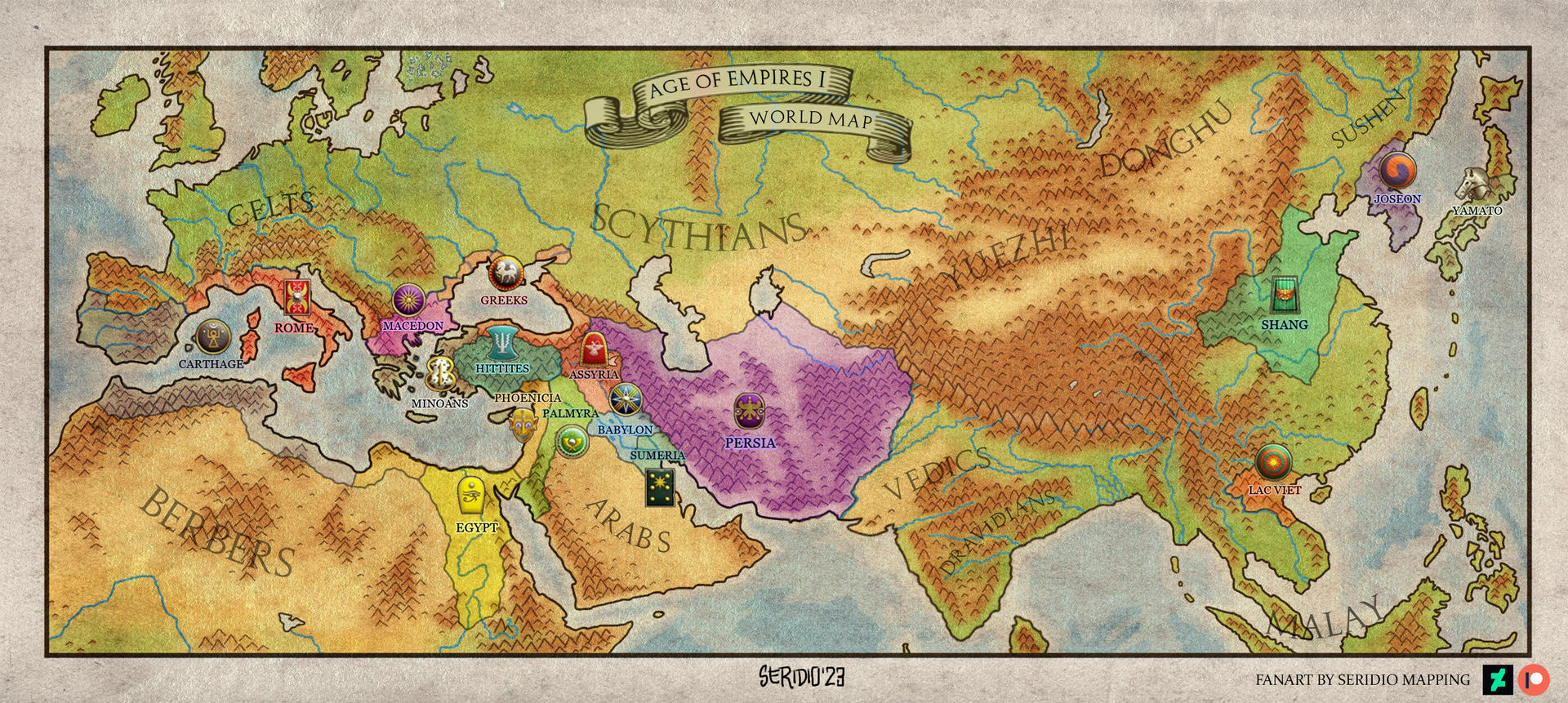Age of Empires: Return of Rome Known World Map with all the Civs