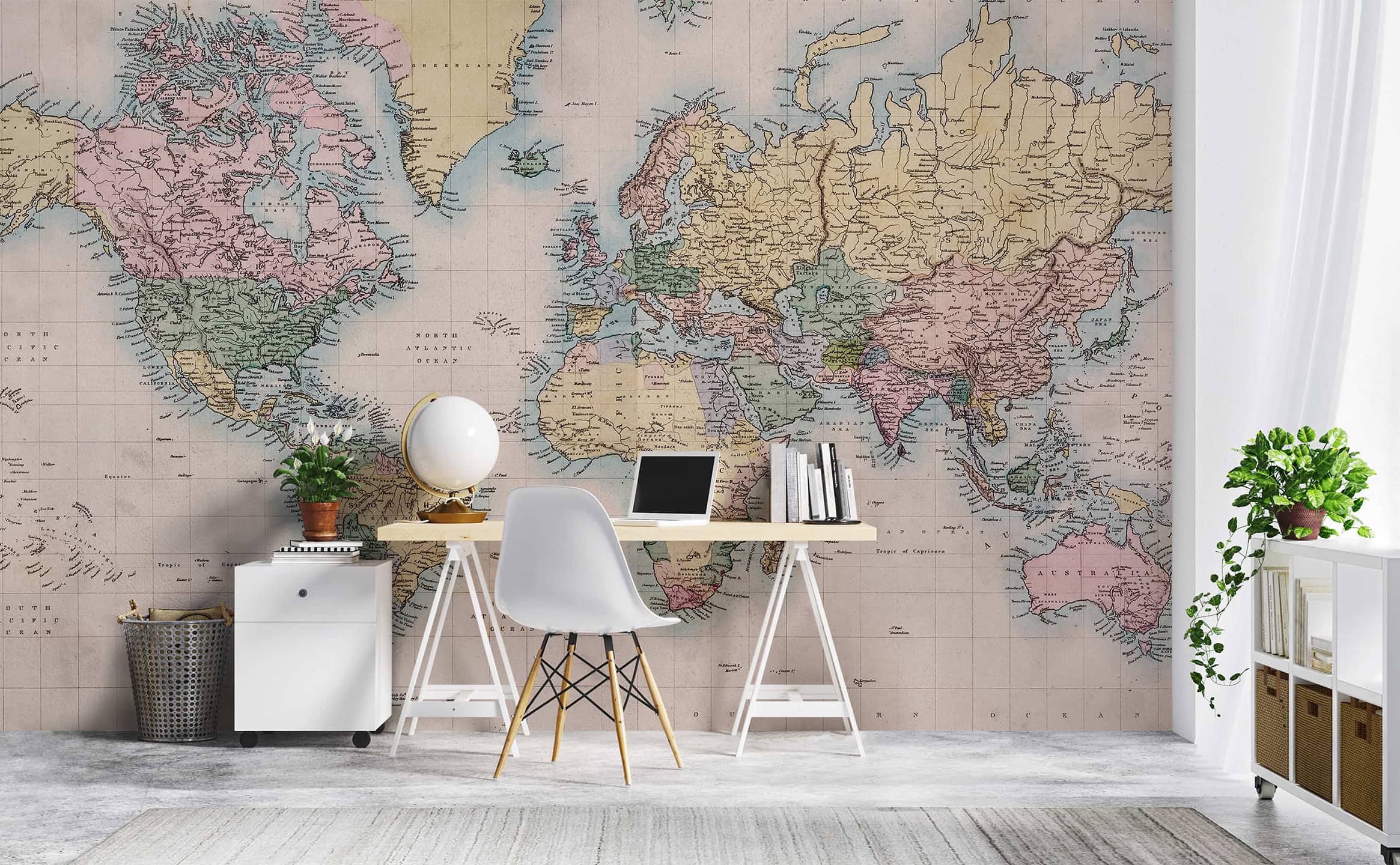 World Map Wall Art Colorful World Map Mural Removable Wallpaper